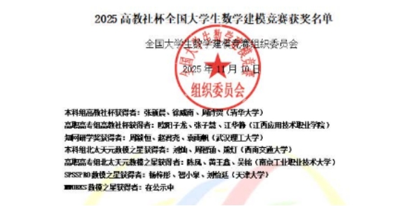 近日,2025 年 “高教社杯” 全国大学生数学建模竞赛国家级获奖名单揭晓。广州华商职业学院巢明璋、林子铉、陈旭资三位同学组成的团队,在黎顺钻老师指导下脱颖而出,斩获国家级二等奖,为校争光的同时,彰显了学校“以赛促学”的实践成效。