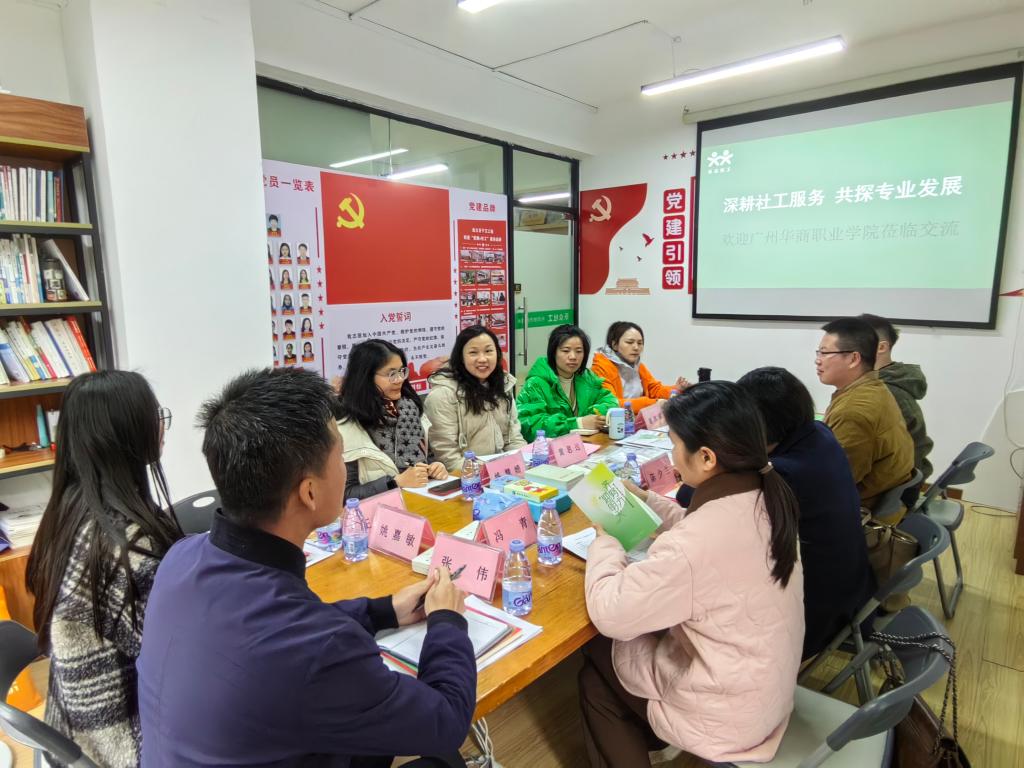 为进一步贯彻落实教育部关于高校访企拓岗促就业专项行动要求,拓宽实习就业渠道,深化产教融合,1月22日下午,广州华商职业学院通识与教育学院副院长陈少兰、庄泽森带领教育教研室、商务英语教研室、人文素养教育教研室负责人及教师,赴广州市增城区乐众社会工作服务中心开展访企拓岗活动,并与该机构总监黄思远及相关业务部门进行深入座谈交流。