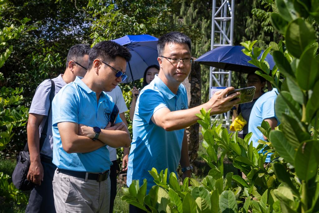 活动当日,教育学院党总支青年委员、团委书记、学生第一党支部宣传委员沈锶佩与广东省农技协监事长、教育学院叶宜生教授、学生代表朱炜国与省农技协专家一行,在周陂镇人民政府工作人员陪同下,首站抵达周陂镇特色香水柠檬与三华李种植基地开展现场调研。专家团队深入田间地头,与种植户进行面对面交流,细致了解作物培育、病虫害防治、产品深加工及市场销售等环节的具体情况与核心需求,为后续提供精准科技支持奠定了坚实基础。随后,教育学院代表学校走访慰问当地老党员同志、农民等,为他们送去增城特色农产品,促进农产品特色化的品牌交流与学习。