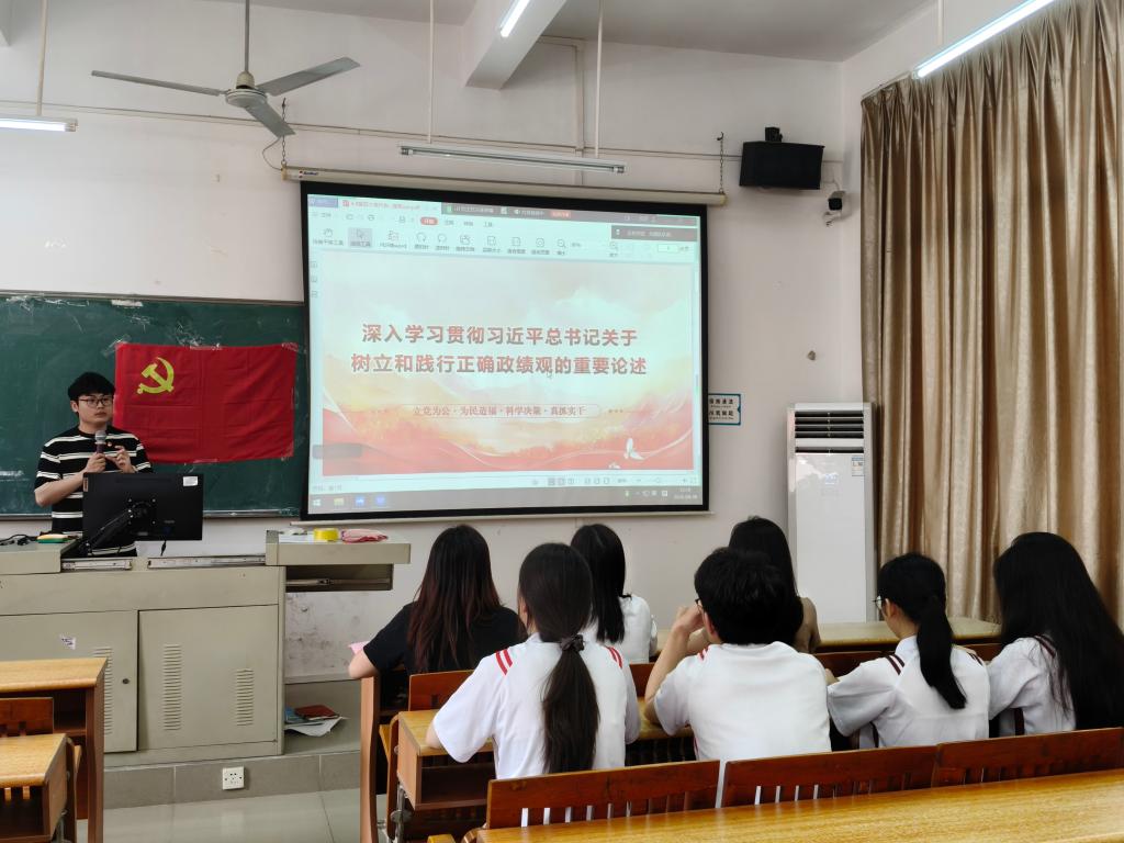 为深入学习贯彻习近平新时代中国特色社会主义思想,引导青年学生党员树立正确的价值导向与事业追求,筑牢思想根基,通识与教育学院学生第一党支部于4月8日中午在博学楼C405专题党课,集中学习习近平总书记关于树立和践行正确政绩观的重要论述。本次党课由支部书记王嘉诚同志主讲,支部全体党员参加学习。