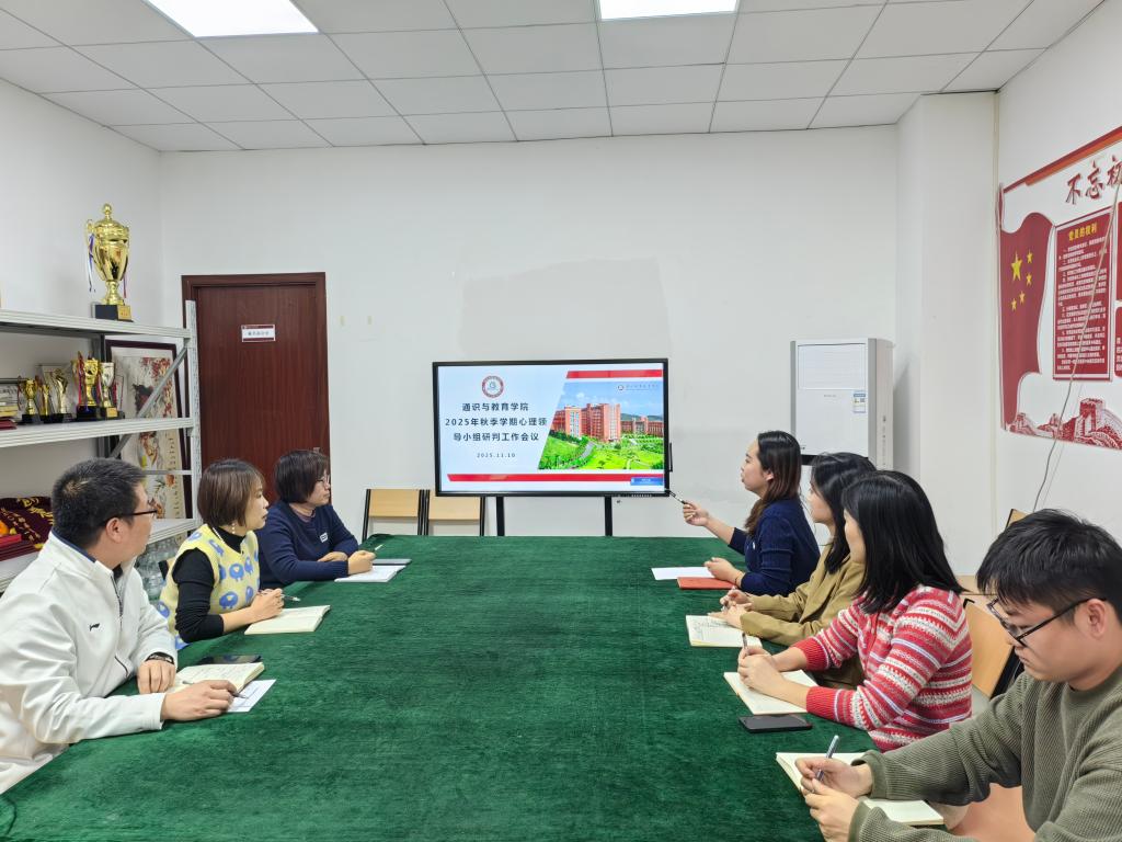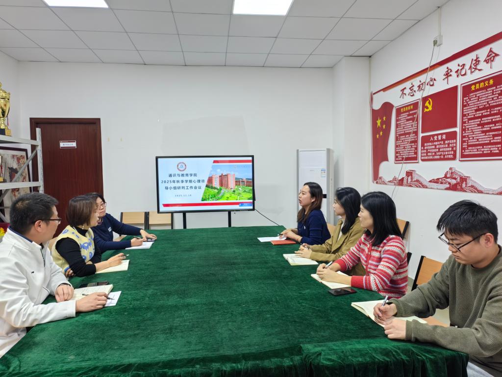 为进一步抓实抓细学生心理健康教育工作,及时研判学生心理动态,防范化解心理风险,11月10日,通识与教育学院两校区召开2025年秋季学期心理工作领导小组研判会议。会议由沙园松院长主持,全体工作领导小组成员参会,围绕“精准掌握学生心理状况、完善风险干预机制”展开深入研讨,为后续心理育人工作明确方向。