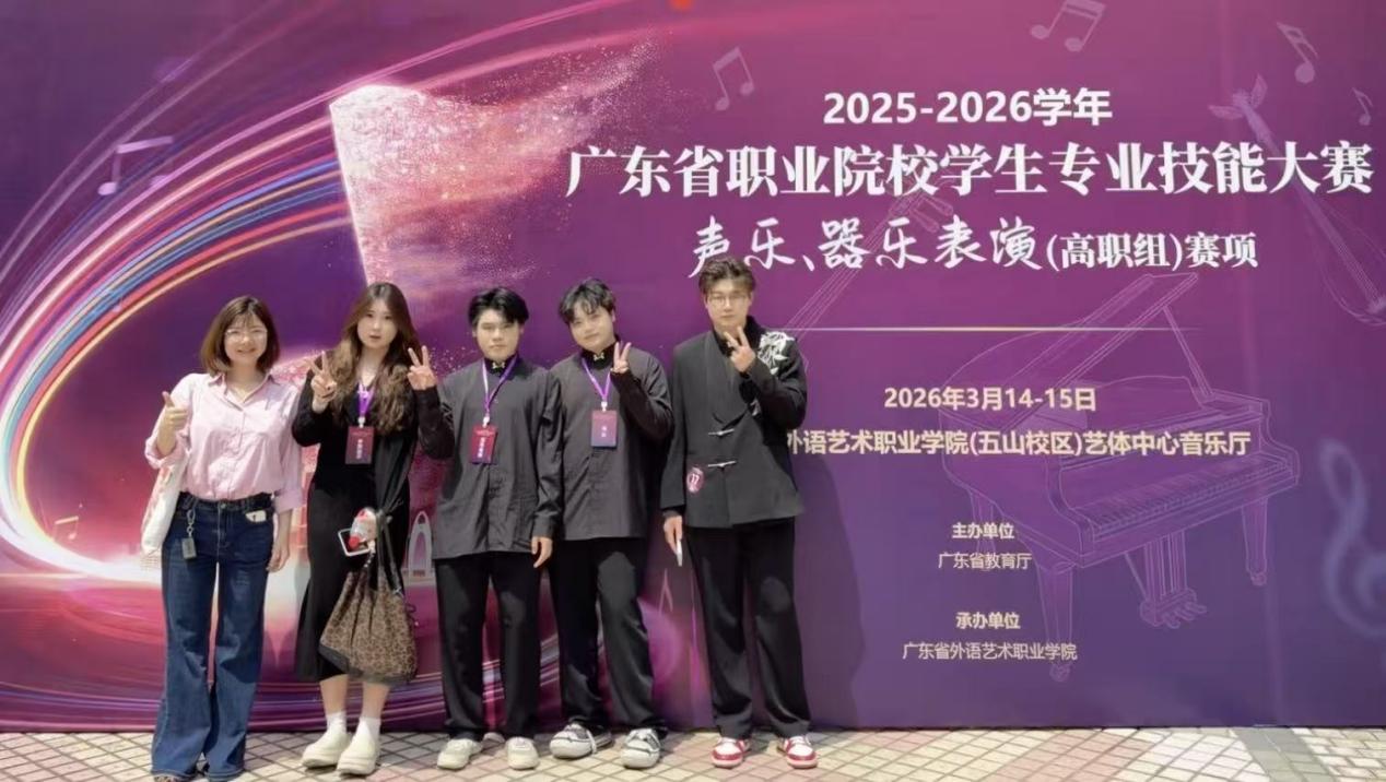 2026年 3月14-15日,2025-2026年广东省职业技能大赛声乐、器乐赛项在广东外语艺术职业学院举行。我院2025级音乐表演专业的学生在苏晓老师的带领下,赴穗参赛,...